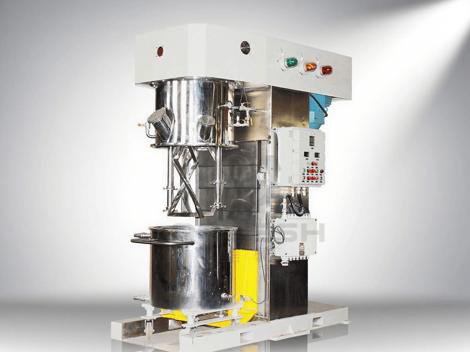 雙行星動力攪拌機雙行星動力混合機是一種新型且對多種混合液體、粉體進行攪拌、溶解、分散、均質(zhì)效率好的攪拌設(shè)備。該設(shè)備配有高速、低速、活動刮板部件,低速攪拌部件采用行星齒輪傳動,攪 -